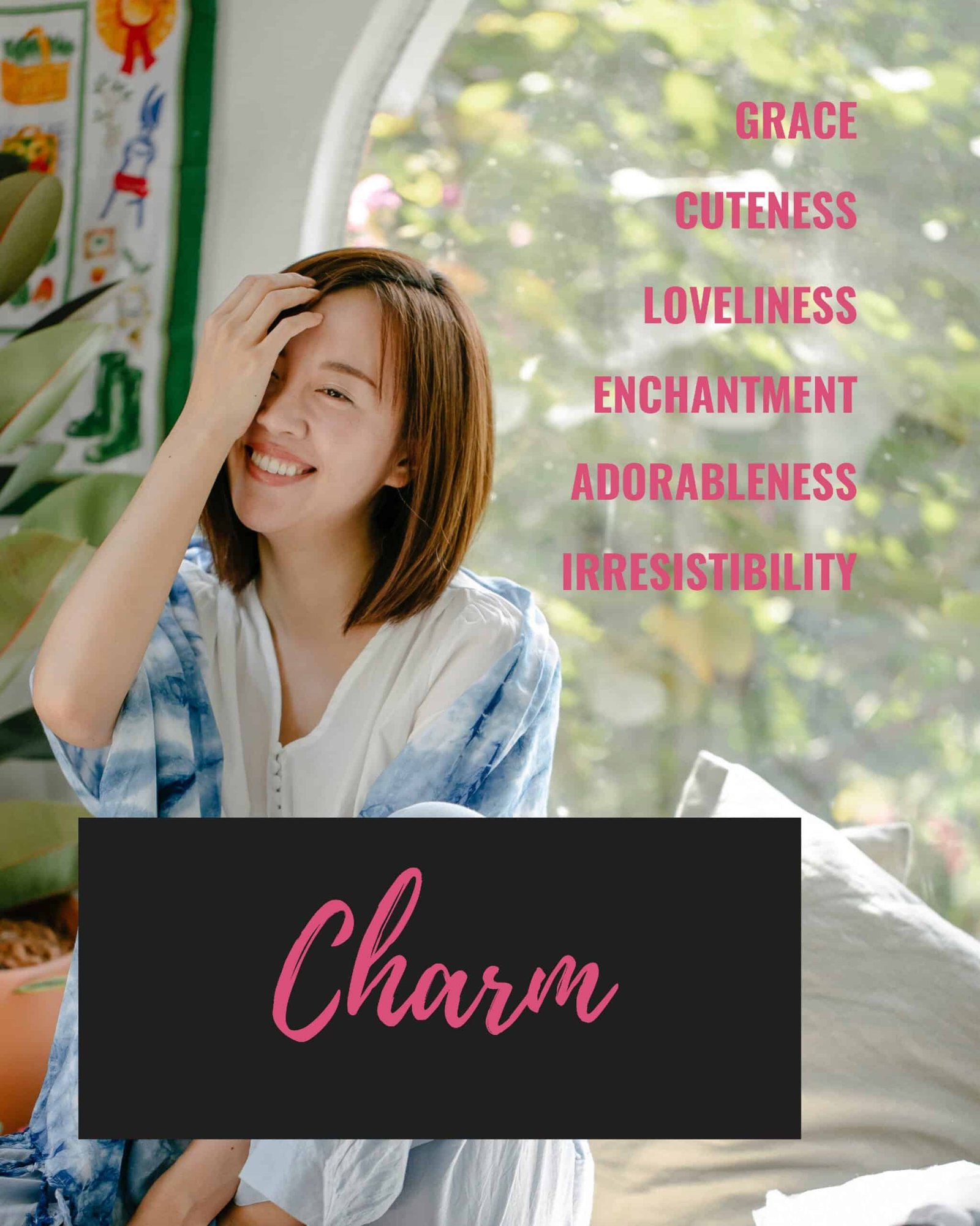 Charm is the delightful ability to attract, please, or influence others through personality, appearance, or behavior, often creating a sense of likability and appeal. Charming individuals have that magnetic pull that draws people in, making them feel comfortable and valued. In addition, they are kind, likable, and easy to talk to, often adding a dash of humor or wit to spice up the conversation.