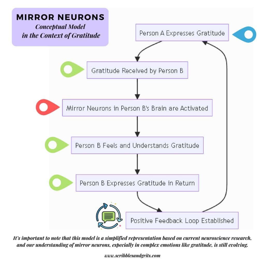 As a result of the activation of mirror neurons, Person B not only understands the gratitude expressed by Person A but also experiences a sense of gratitude. This is because mirror neurons allow us to ‘mirror’ the emotions and actions of others, leading to a deeper understanding and shared experience.