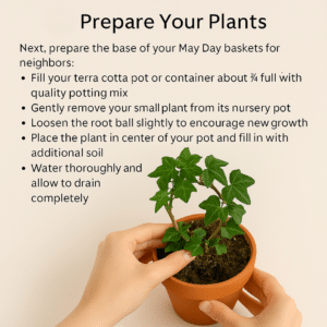 - Wrap the entire pot in decorative tissue or burlap and tie with raffia for a traditional May Day “basket” look