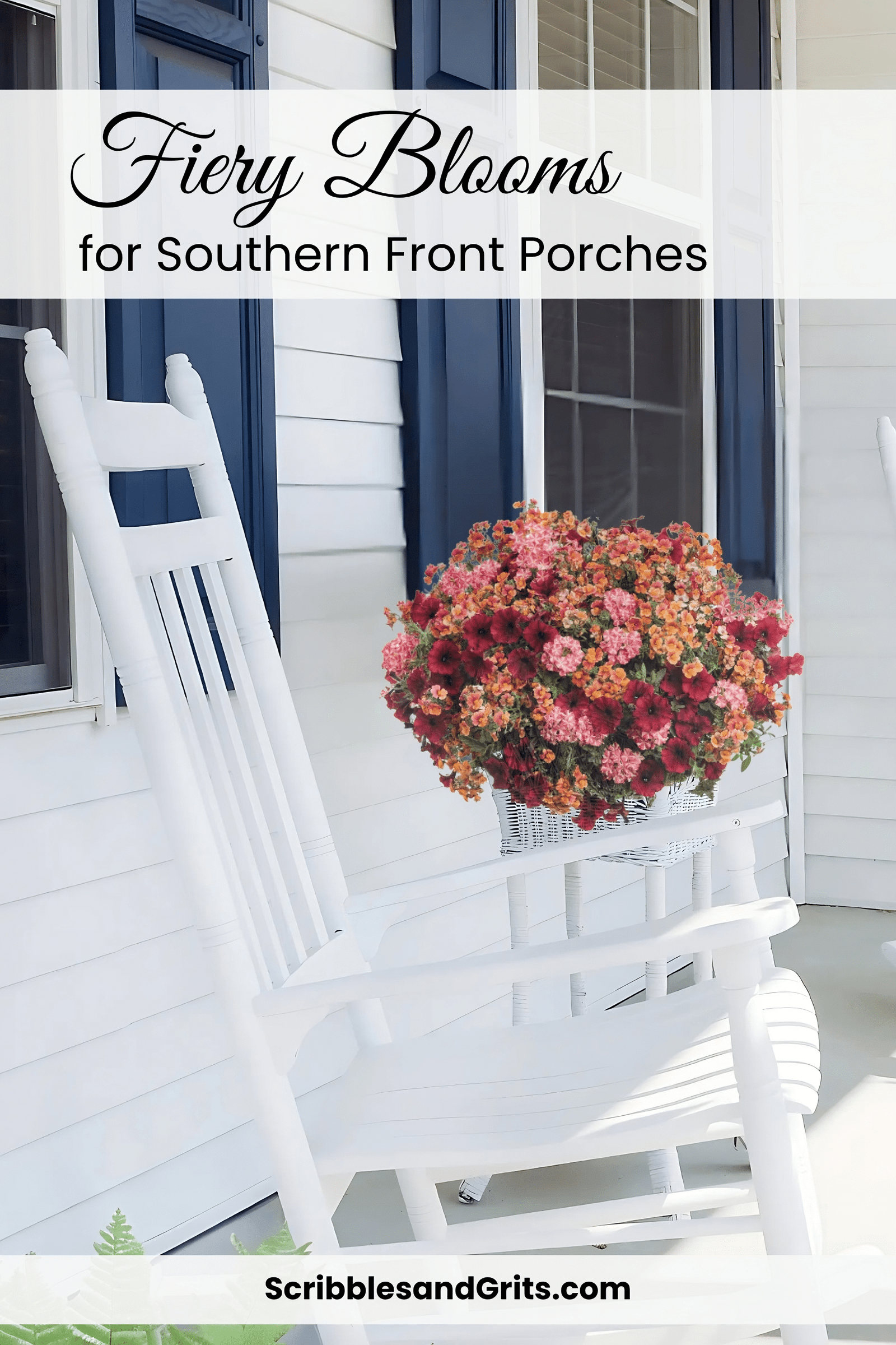 A fiery mix of cherry, coral, and blood orange blooms, this potted flower arrangement adds instant warmth to any front porch planter or sun-filled patio corner. It’s a vibrant and easy way to bring creative flower pot ideas into your Southern outdoor space.
