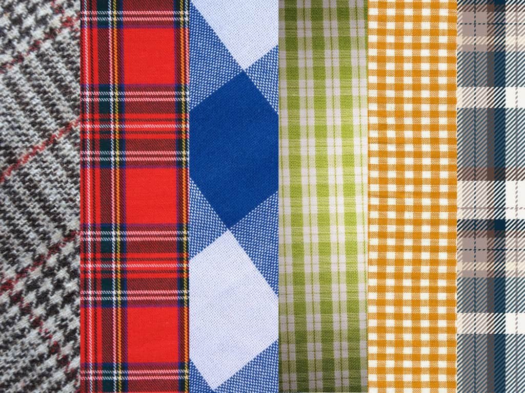 Checks include both gingham and buffalo plaid but also encompass other types of plaid patterns: